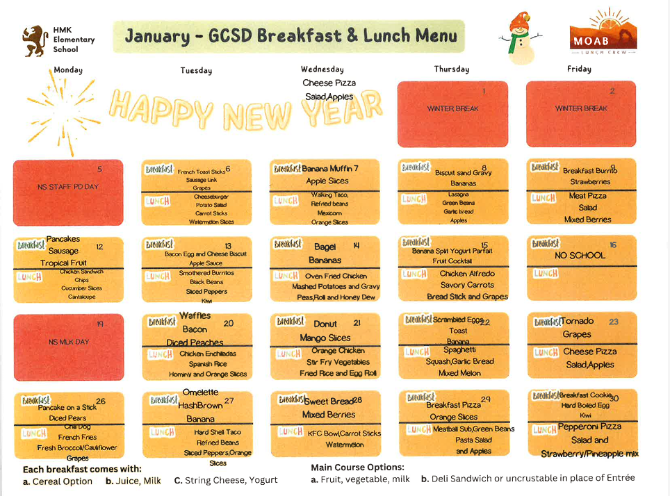 January Breakfast/Lunch Menus